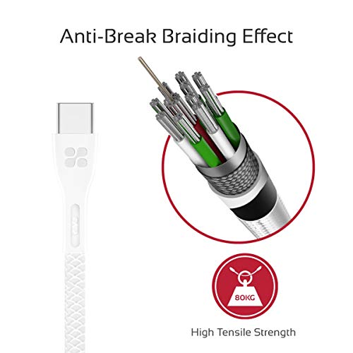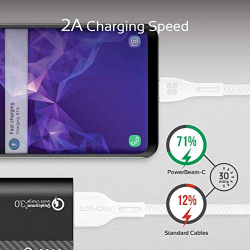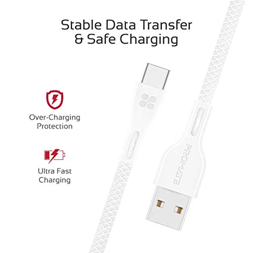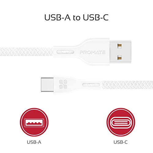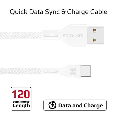 Promate - كابل شحن باور بيم-سي سريع بمنفذ USB نوع C من بروميت الى بقوة 2 امبير وطول 1.2 متر مع سرعة نقل تصل حتى 5 جيجابت في الثانية بتصميم مقاوم للتمزق لتوفير عمر ثني طويل أبيض
