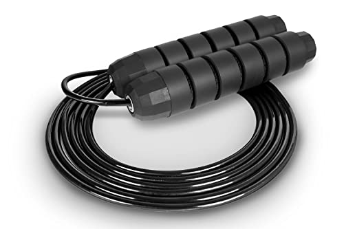 ProsourceFit - حبل القفز السريع من بروسورس فيت بطول يصل إلى 8 أقدام قابل للتعديل للرجال والنساء، بمقابض من الفوم، حبل خفيف للغاية للملاكمة وتمارين القفز وتمارين القلب، لون أسود