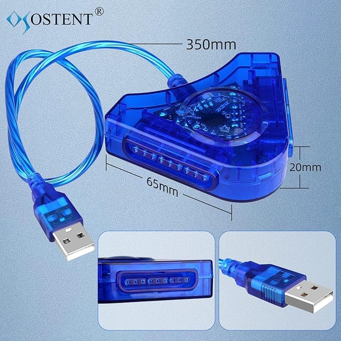 Generic - كابل محول لوحدة تحكم بلاي ستيشن 1 أو بلاي ستيشن 2 إلى الكمبيوتر بمنفذ USB 2.0، متوافق مع وحدة تحكم بلاي ستيشن 2