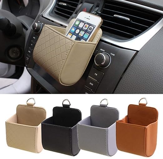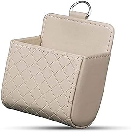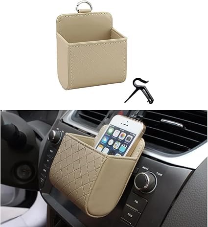 Generic - صندوق جيب حامل للهاتف المحمول من الجلد الصناعي مع فتحات تهوية داخلية محمول لحفظ الموبايل تخزين يتم تعليقه بفتحة السيارة ( بيج - قطعة واحدة ) -