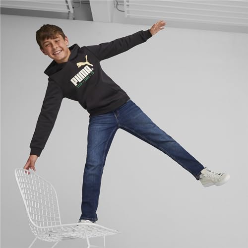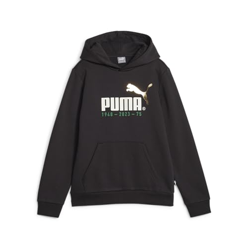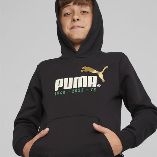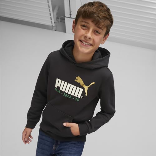 PUMA - سويت شيرت بغطاء للراس مطبوع عليه شعار رقم 1 للاولاد / للجنسين FL B من بوما، اسود، مقاس 140 EU، ياقة عالية جدًا
