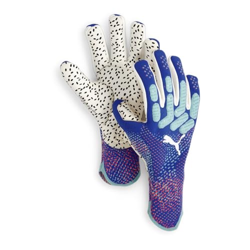 PUMA - قفازات فردية لكرة القدم من تشكيلة فيوتشر للرجال/الجنسين من بوما، لون أزرق (بلوميزينج صنست جلو) وأخضر (جلو اليكتريك بيبرمينت)، 9