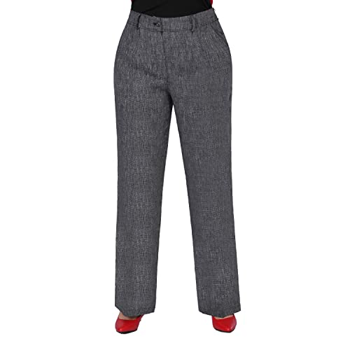 Smoky Egypt - بنطلون من الكتان النقي، بخصر مرتفع وقصة أرجل مستقيمة وبسوستة أمامية وحزام خصر خلفي مرن وجيوب جانبية