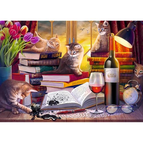 - بازل 2000 بلاطة مثالية لجميع محبي الألغاز، تسمح لك بإنشاء صورة مقاس 961 × 682 ملم، تصور القطط الصغيرة وهي تركل الكتب