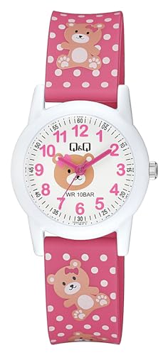 Q&Q - Q&Q ساعة يد انالوج للاطفال بسوار راتنج احمر من سيتيزن V22A-012VY، للفتيات