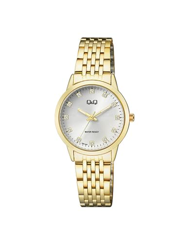 Q&Q ATTRACTIVE - ساعة كيو اند للنساء QZ81J001Y - عرض انالوج وسوار من الستانلس ستيل - ذهبي