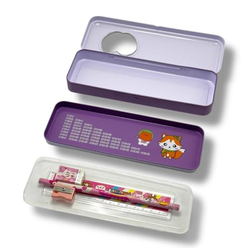 Qshop - مقلمة متعددة الوظائف من كيوشوب®️، صندوق اقلام كرتوني لطيف للاطفال،مبراة ومسطرة و ممحاة و قلم حافظة اقلام متعددة الوظائف للوازم المدرسية، للاطفال (Purple Cat)