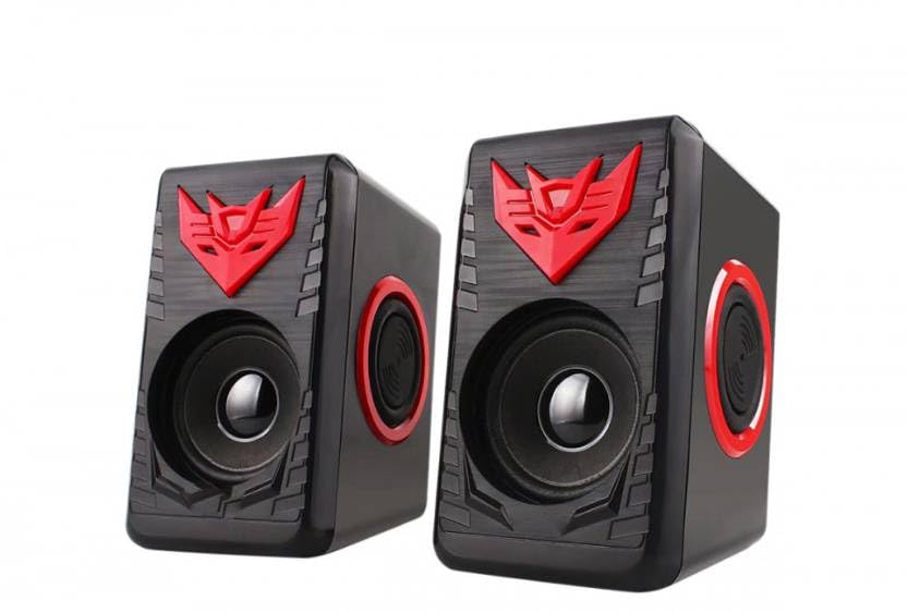 QUEST كويست - مكبر صوت للكمبيوتر USB طراز T008A، مكبر صوت للكمبيوتر مدمج بصوت نقي متوافق مع اللاب توب من كويست، تصميم باللونين الأسود والأحمر (قطعة واحدة)