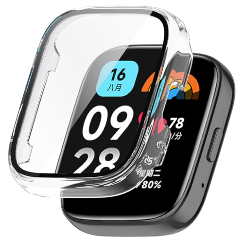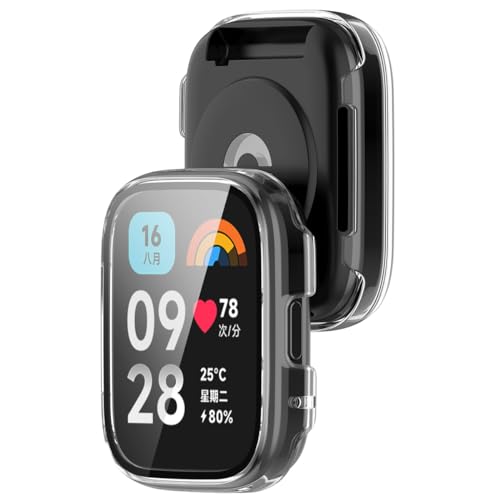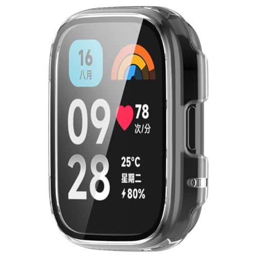 QWYJ - جراب حماية لساعة ريدمي 3 اكتيف ولايت - جراب من البولي كربونات مع شاشة حماية من QWYJ (شفاف)