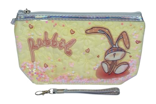 Generic - شنطة مستحضرات تجميل بطبعة ارنب مع مقبض - اصفر