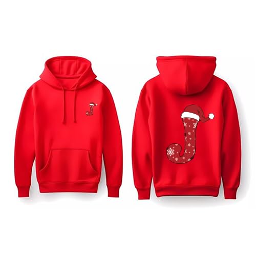 Generic - سويت شيرت بغطاء رأس مطبوع عليه حروف الكريسماس (J) مقاس (9-12 سنة)