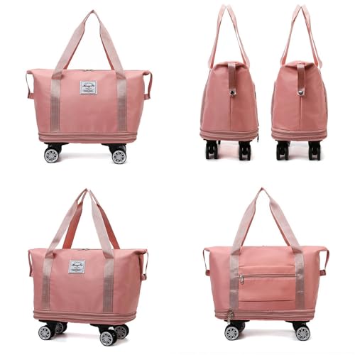 Radefasun - شنط سفر كبيرة توت مع بعجلات قابلة للتوسيع ومقاومة للماء من قماش اوكسفورد عجلات راديفاسون شنطة خفيفة الوزن للطي وردي للفصل