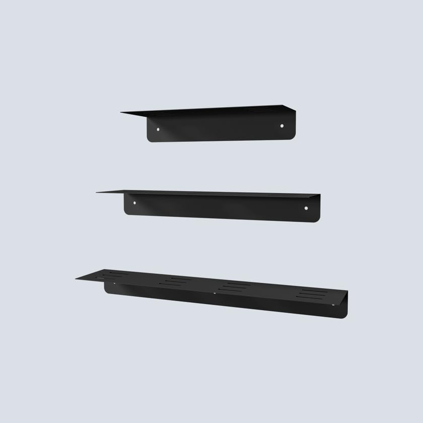 Raffinata - أرفف تخزين حمام كانديلا تريو كاديس بي 20 تثبت على الحائط من 3 قطع، طول 50 سم × عمق 10 سم × 6 سم ارتفاع، لون أسود من رافيناتا