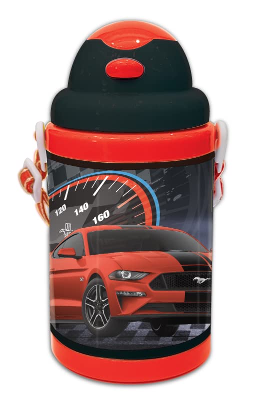 Rainbow Max - زجاجة مياه بلاستيك بتصميم سيارة موستانج بحزام لحملها، 460 مل