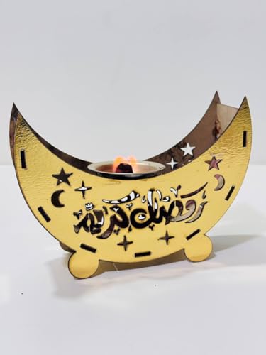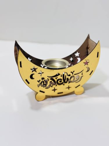 - تصميم هلال أنيق مع الخط العربي مناسب للبخور أو شموع تيلايت يضيف سحرًا احتفاليًا وأجواءً دافئة، مناسب لديكورات شهر رمضان أو هدايا، مصنوع من خشب متين وعالي الجودة.