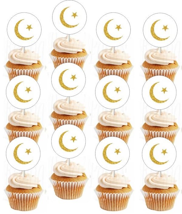 Generic - مجموعة أدوات تزيين الكب كيك ورق للحفلات بتصميم عيد رمضان- 24 قطعة.