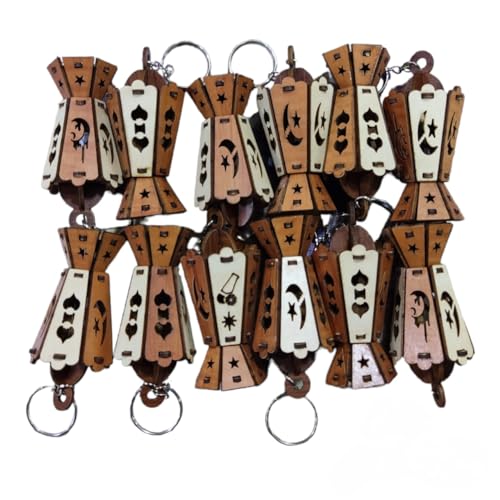 LC - فانوس رمضان بتصميم ميدالية خشبية سداسية الشكل - 6 قطع (متعدد الألوان)