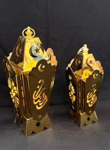 - فانوس رمضان مضيء: فانوس تقليدي بتصميم إسلامي أنيق باللون الذهبي المضيء يضفي أجواء روحانية مميزة خلال شهر رمضان المبارك