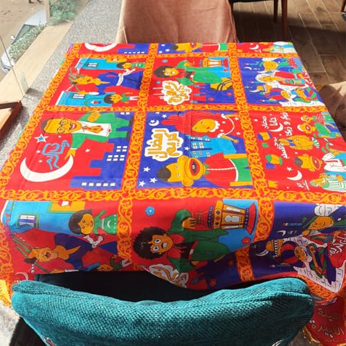Generic - مفرش طاولة اشكال رمضان - 150 × 140 سم - خيامية حمراء