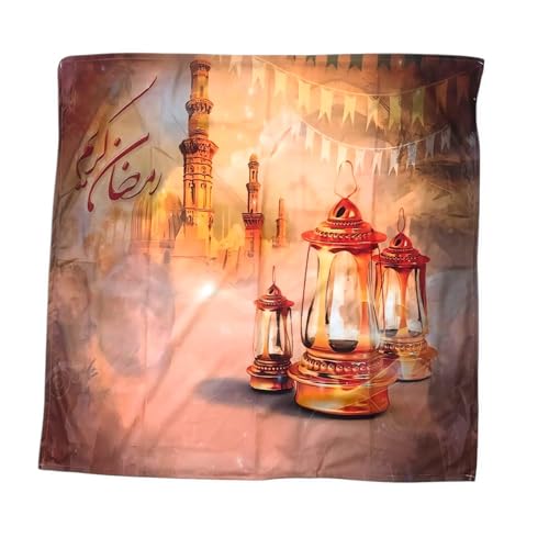 Generic - مفرش طاولة من القطيفة بتصميم رمضاني، نقشات فانوس رمضان ورمضان مبارك، متعدد الألوان، 140×200 سم