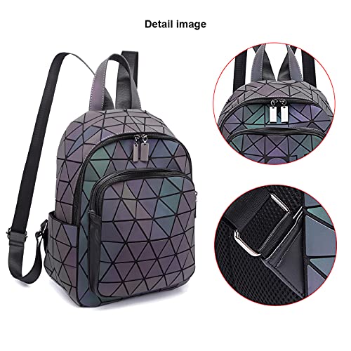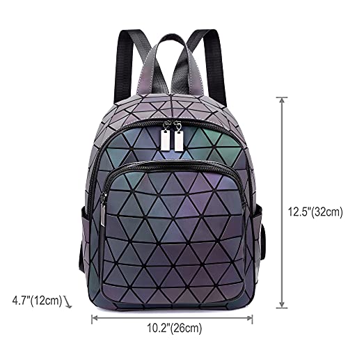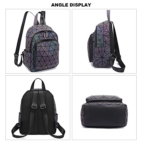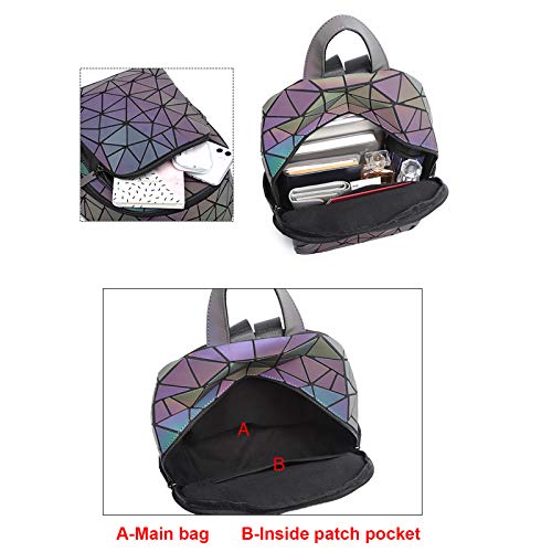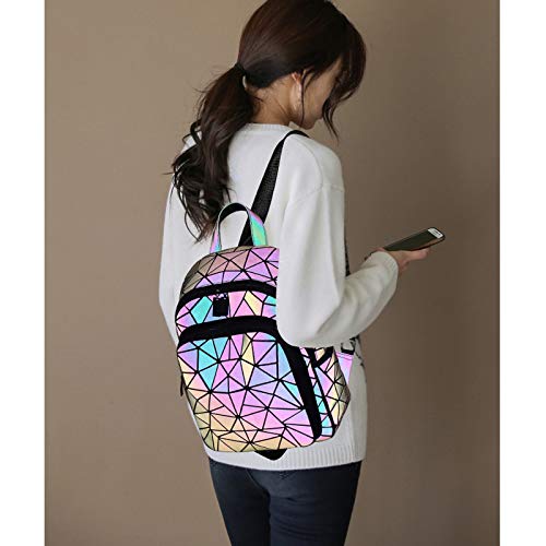 RANSUU - شنطة ظهر عاكسة بجيوب هندسية للنساء من رانسو، شنطة يد هولوجرافية، شنطة كتف بتصميم هندسي مضيء، جراب موبايل
