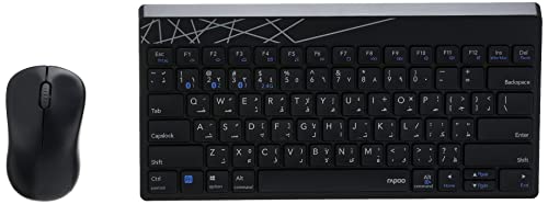 RAPOO - مجموعة كيبورد وماوس لاسلكية متعددة الاوضاع مع بلوتوث 3.0/4.0 وتردد راديو 2.4 جيجا للتبديل بين 3 اجهزة من رابو 8000M، اسود