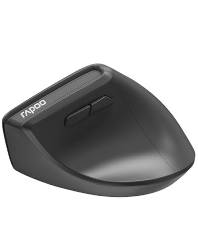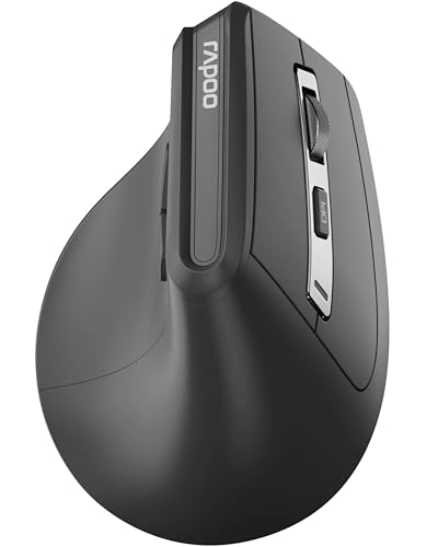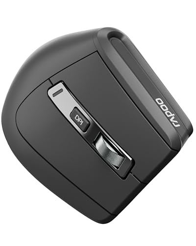 RAPOO - ماوس لاسلكي عمودي متعدد الوضعيات قابل لتعديل الحساسية من 800 إلى 2400 نقطة لكل بوصة من رابو، لون أسود، EV310M