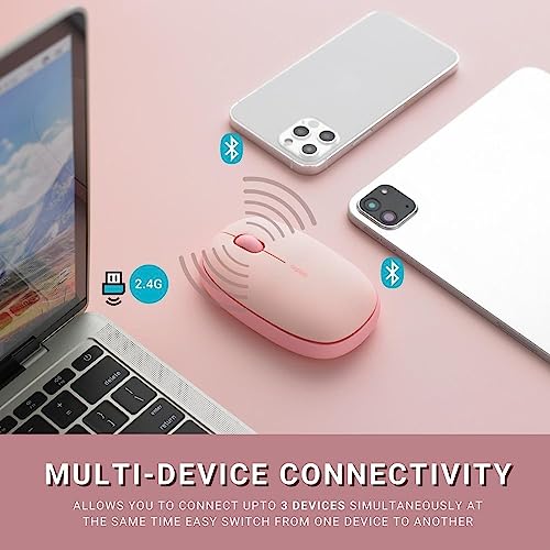 RAPOO - رابو ماوس بلوتوث صامت متعدد الاجهزة M650، وضع بلوتوث مزدوج + ماوس لاسلكي 2.4G، عمر بطارية 9 اشهر، تبديل حتى 3 اجهزة، ضمان لمدة عامين - بينك