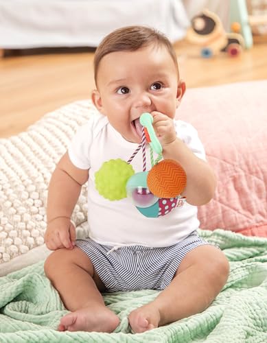 - خشخيشة الأطفال الحسية: يمكن للأطفال لمسه واستكشافه واللعب بـ 4 كرات مختلفة!