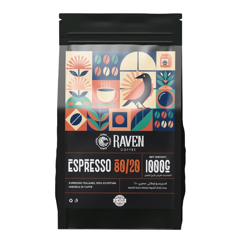 Raven coffee - حبوب قهوة اسبريسو 80/20 من ريفين، 250 جرام، من ريفن كوفي