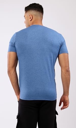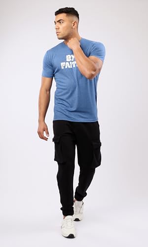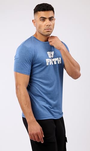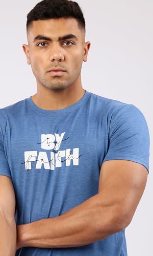Ravin - تي شيرت رجالي من ريفين منسوج مطبوع عليه عبارة "By Faith" من القطن، باللون الأزرق الصلب