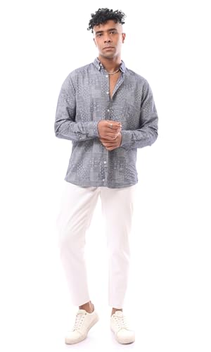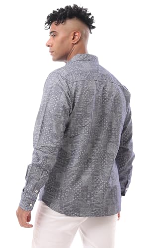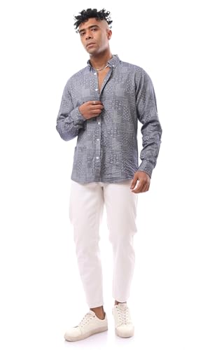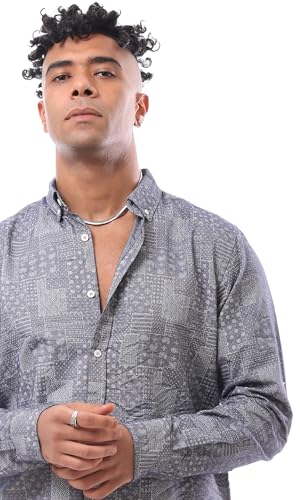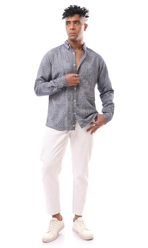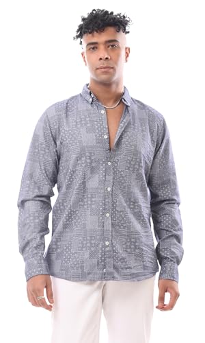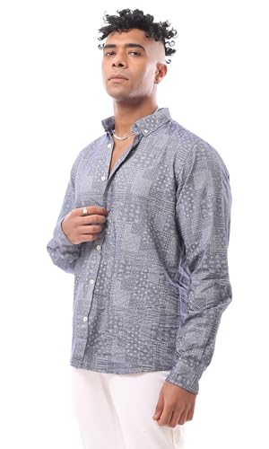 Ravin - قميص منقوش بأكمام طويلة للرجال من ريفين، أزرق سماوي، مقاس لارج L
