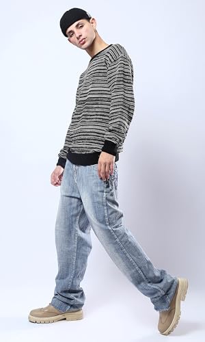 Ravin - بلوفر شتوي مريح سهل الارتداء للرجال باللونين الأسود والأبيض من ريفين