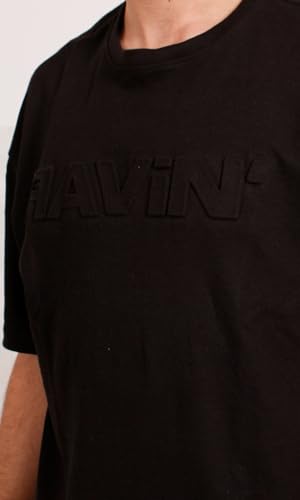 Ravin - ريفين تي شيرت رجالي مطبوع عليه نص جريء من انتللوك - اسود عصري