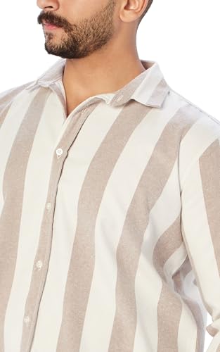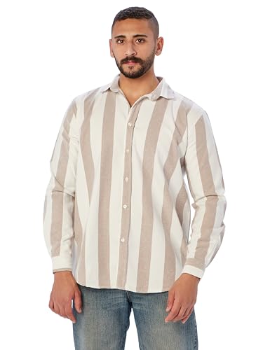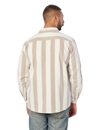 Ravin - قميص عصري مخطط بأزرار سفلية للرجال من ريفين، لون بني