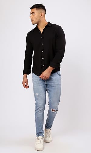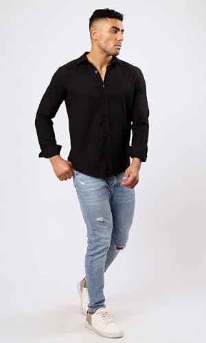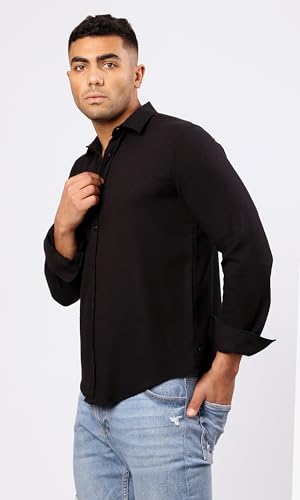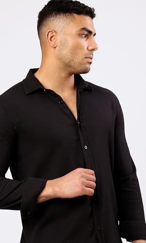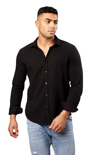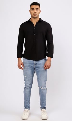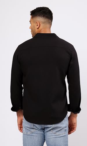 Ravin - قميص عصري رجالي من القطن بأكمام طويلة وتصميم منقوش وأزرار ريفين لون أسود
