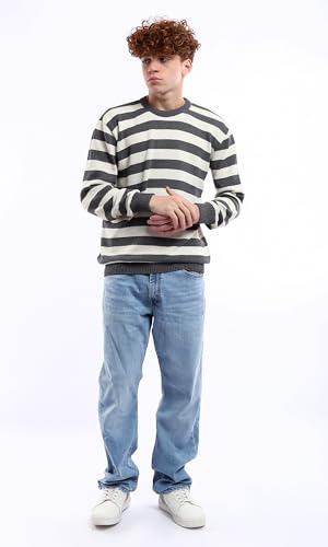 Ravin - بلوفر كاجوال مخطط للرجال من ريفين، لون رمادي غامق واوف وايت