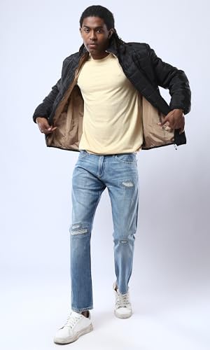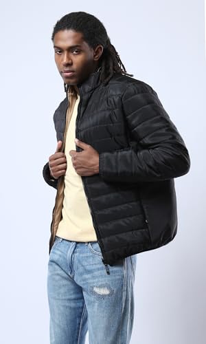 Ravin - جاكيت منفوخ سادة مبطن بوجهين وتصميم حديث للرجال من ريفين، لون جملي وأسود