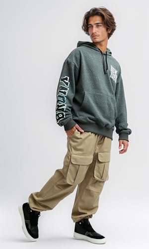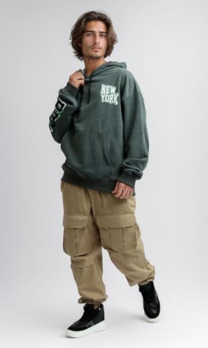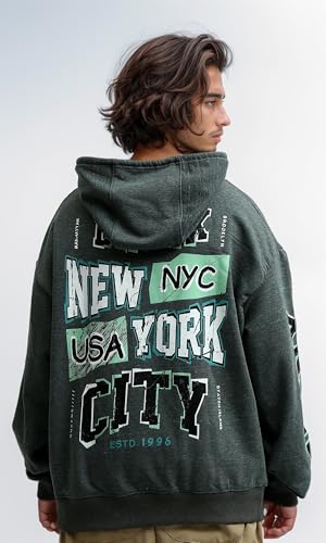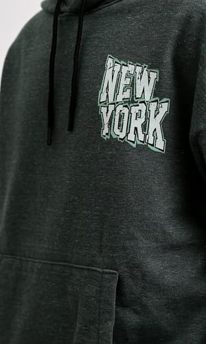 Ravin - ريفين سويت شيرت شتوي بغطاء للراس مطبوع عليه كلمة "New York" للرجال من الامام والخلف - رمادي داكن مرقش