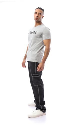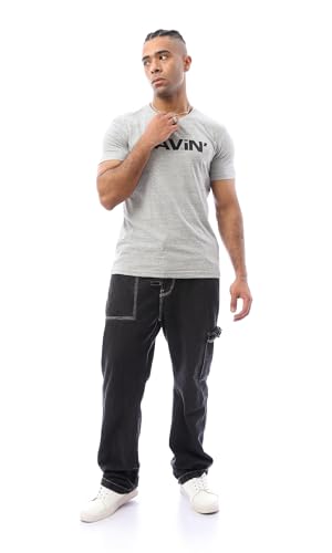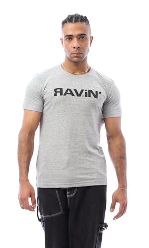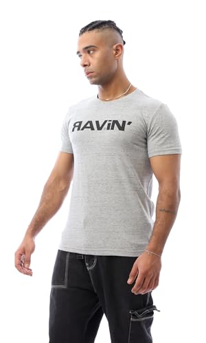 Ravin - ريفين تيشرت عصري للرجال مطبوع عليه كلمة "Ravin" باللون الرمادي الفاتح