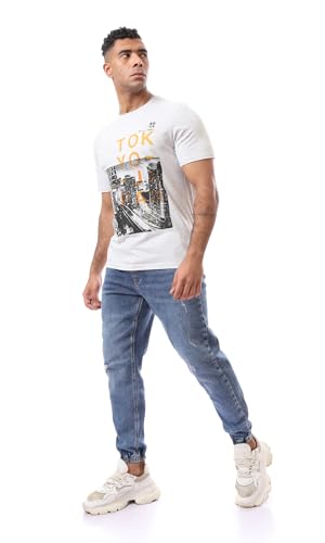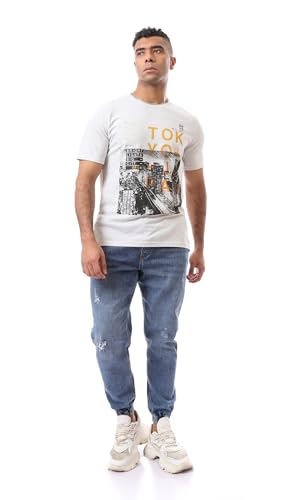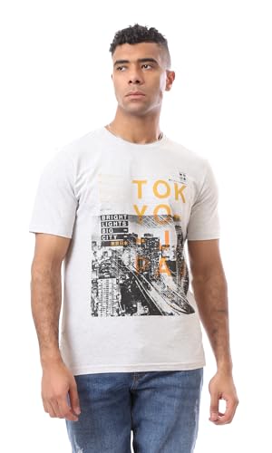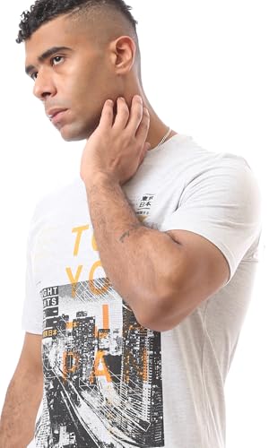 Ravin - تيشرت عصري مطبوع عليه صورة طوكيو-اليابان للرجال من ريفين، لون رمادي فاتح مرقش