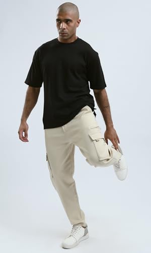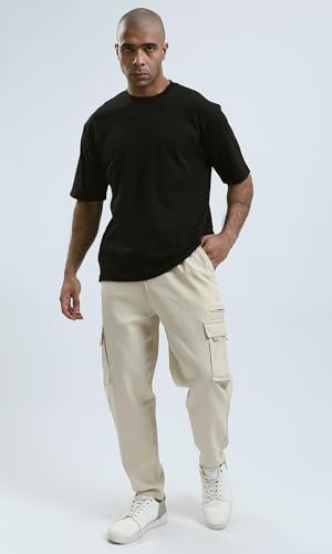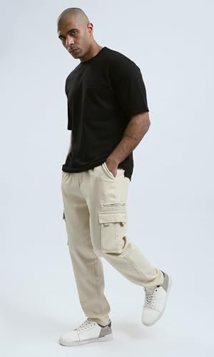 بنطلون رياضي بقصة عادية وجيوب بلون بيج فاتح