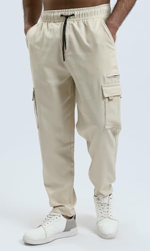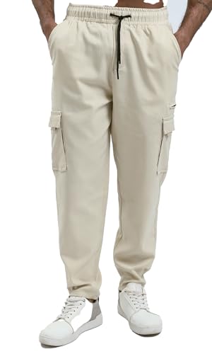 Ravin - بنطلون رياضي بقصة عادية وجيوب للرجال بلون بيج فاتح من ريفين