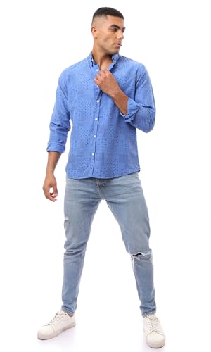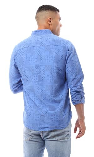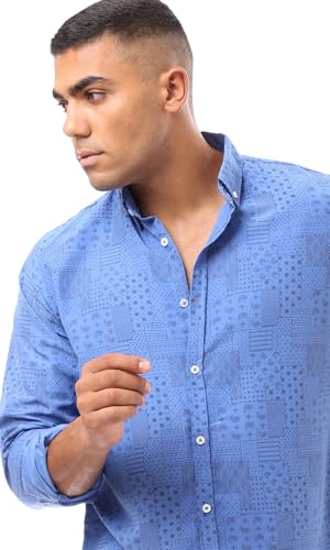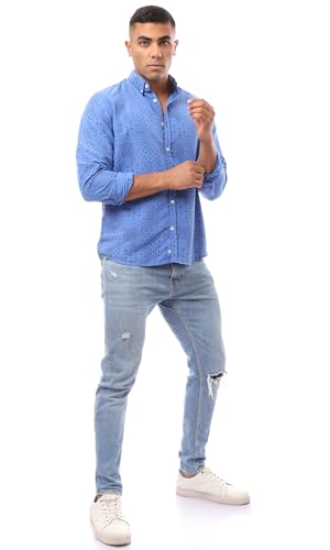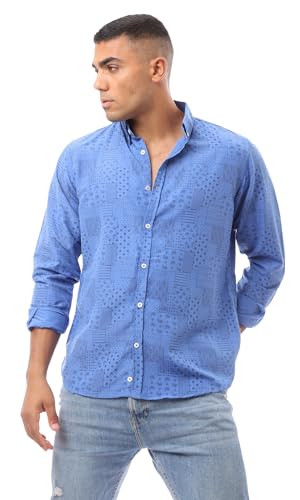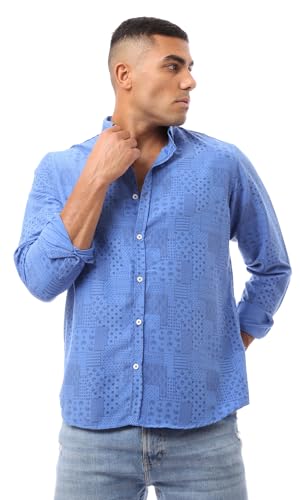 Ravin - قميص بأكمام طويلة وياقة مطوية لأسفل بتصميم عصري للرجال من ريفين، لون أزرق غامق