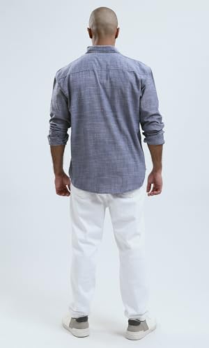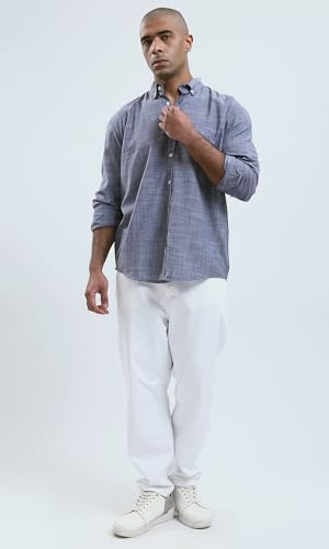 قميص كاجوال سادة بأكمام طويلة بلون أزرق فاتح
