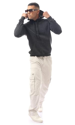 Ravin - سويت شيرت شتوي سادة بارز الملمس مريح سهل الارتداء للرجال من ريفين، ياقة عالية جدًا