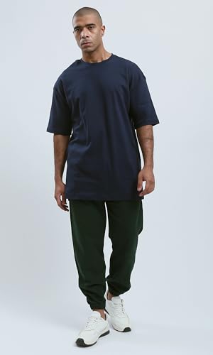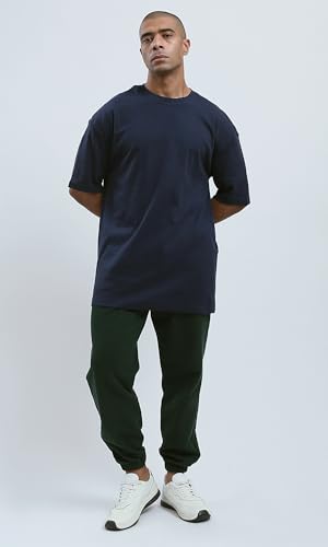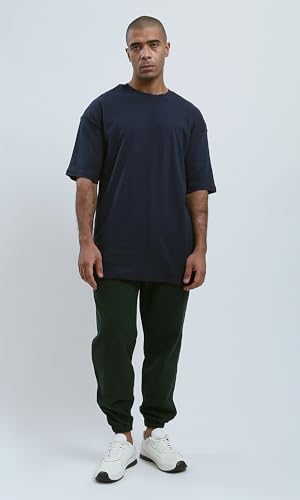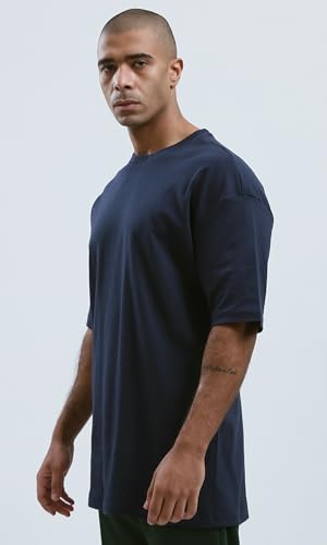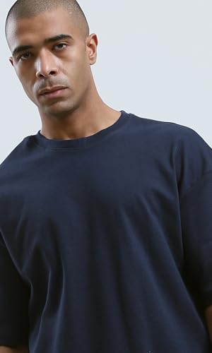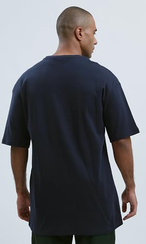 Ravin - تي شيرت عصري فضفاض بلون كحلي سادة للرجال من ريفين