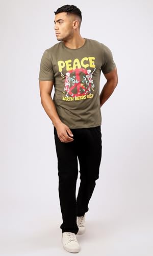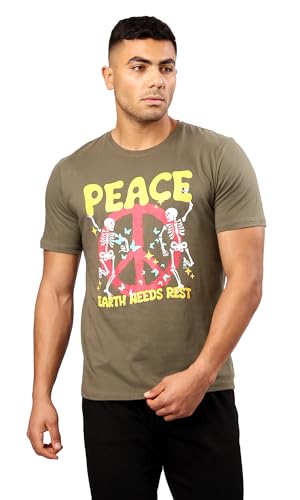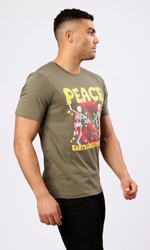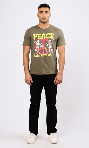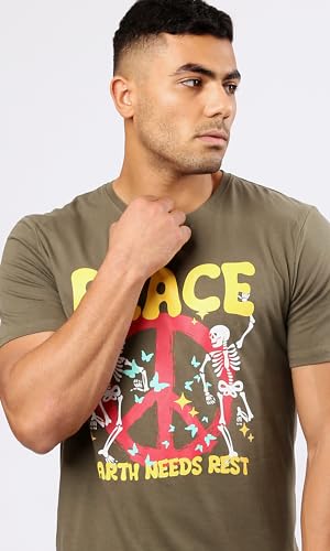 Ravin - تيشرت سهل الارتداء بتصميم عصري مطبوع عليه كلمة "Peace" من الأمام للرجال من ريفين، لون زيتي