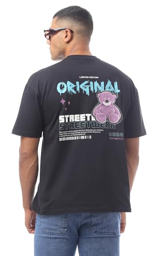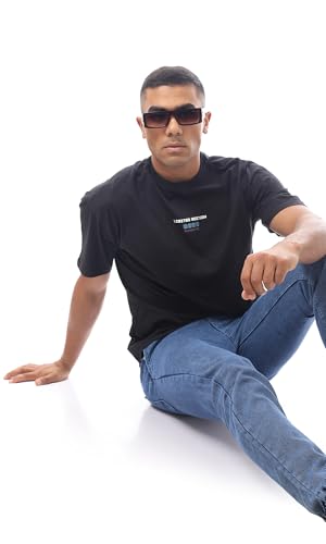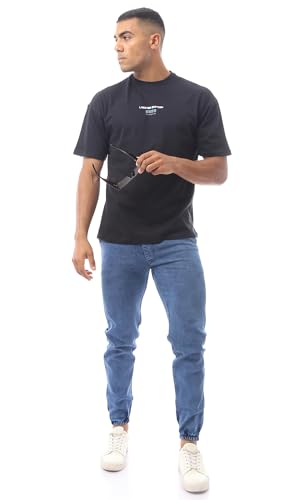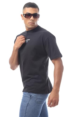 Ravin - ريفين تيشرت رجالي مطبوع سهل الارتداء برقبة دائرية لون اسود عصري