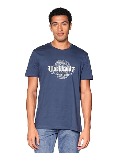 Ravin - تيشرت بأكمام قصيرة مطبوع بكلمة "Worldwide" للرجال من ريفين، لون أزرق كحلي